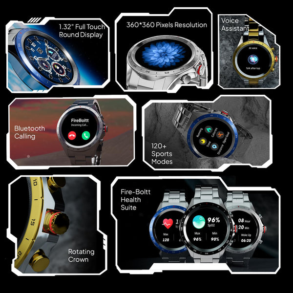 Solace Luxury Stainless Steel Smart Watch, 33.52mm HD Display, Bluetooth Calling